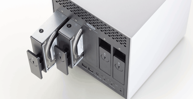 RAID 6 : Die Konfiguration des RAID-6 Systems ist ähnlich wie bei RAID-5, allerdings werden die Paritätsinformationen bei RAID 6 doppelt verteilt, was die Ausfallsicherheit des RAID 6 Verbunds erheblich erhöht. Der Ausfall von zwei beliebigen Festplatten in einem RAID-Array führt zu keinem Datenverlust.